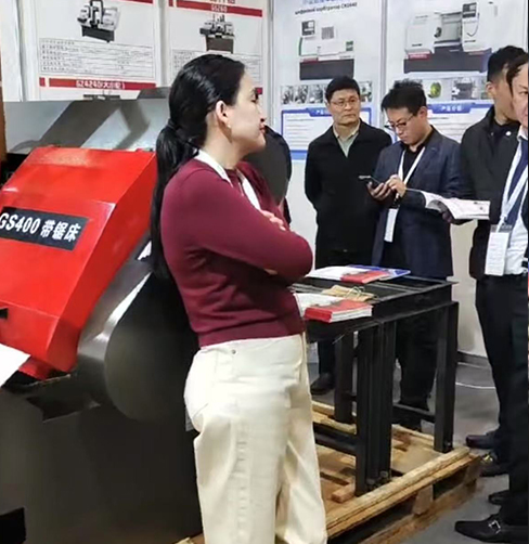 此次展會(huì)上,金鋒鋸業(yè)帶鋸床憑借卓越的性能和創(chuàng)新的設(shè)計(jì),成為全場(chǎng)矚目的焦點(diǎn)。金鋒鋸業(yè)GS400雙立柱帶鋸床是一款全自動(dòng)數(shù)控帶鋸床,適用于批量生產(chǎn)和連續(xù)切割。PLC控制系統(tǒng),可設(shè)置一組或幾組數(shù)據(jù)連續(xù)切割。智能彩色觸摸屏設(shè)置,操作簡(jiǎn)單。運(yùn)行平穩(wěn)無噪音,切割出來的材料光滑零瑕疵。這款鋸床一經(jīng)展出,就吸引眾多外國(guó)客戶前來咨詢,其優(yōu)越的質(zhì)量、高效的性能引得周圍連連贊嘆,更有幾位外國(guó)客戶現(xiàn)場(chǎng)就簽訂了幾款鋸床訂單。