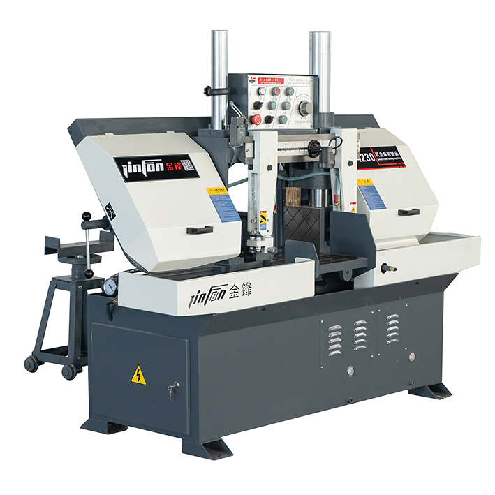半自動臥式鋸床采用液壓夾緊,鋸切時工件不會松動,避免打齒、壓損鋸帶,保護鋸帶。設備配備按鈕和無極調速,確保鋸切精準,誤差達到最小,使切割出來的工件無需二次加工。它的主傳動采用蝸輪蝸桿減速機,動力強勁,性能可靠,經過精密平衡校正,運轉平穩可靠。鋸床具有合理的鋸條導向裝置,有效的延長鋸條壽命,可移動鋸條導向裝置結構穩固、運動靈活。鋸床傳動件往精密平衡矯正,減少震動,下降速度平穩,此精密系統可防止鋸條非正常破壞,達到理想鋸切效果。