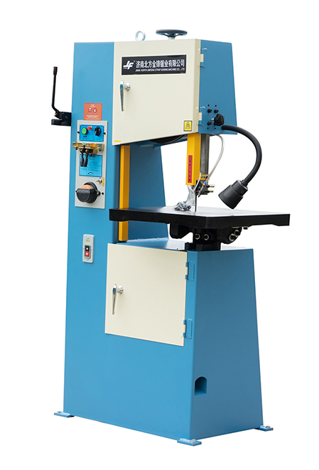 這類精密鋸床尤其適合進行輪廓切割,也可用于大尺寸或重型工件的鋸切和切斷。由于工件固定在工作臺上,操作人員可以輕松推動或旋轉工件,沿標記線用鋸條切割出各種復雜形狀,如圓弧、圓形等,廣泛用于模具、藝術品等加工領域。此外,立式鋸床工作臺承載能力強、穩定性好,也適合對大型鋼板、鑄件、型材等進行切斷或開槽,工件無需移動,安全可靠。在鋸切金屬材料時,推薦使用雙金屬帶鋸條或硬質合金帶鋸條,具體選擇需綜合考慮材料特性與切割效率。